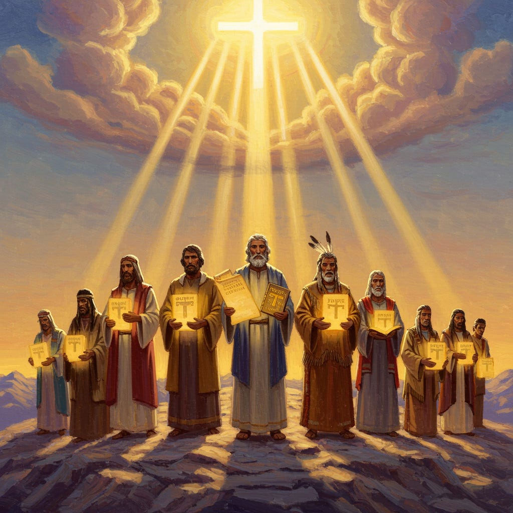 Further, the Bible addresses God’s covenant people scattered across the earth, described as “other sheep” not of the Judean fold. Jesus states in John 10:16, “And other sheep I have, which are not of this fold: them also I must bring, and they shall hear my voice; and there shall be one fold, and one shepherd.” This prophecy points to dispersed groups, such as the lost tribes of Israel (Isaiah 49:6; Jeremiah 31:10), whom God would guide through prophets, producing their own records. These scriptures would echo core Gospel truths—faith, repentance, baptism, the Holy Ghost—while chronicling unique histories, fulfilling Ezekiel 37:16-17’s vision of sticks (scrolls) of Judah and Ephraim uniting.